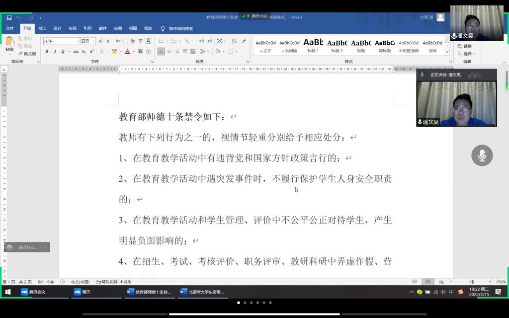 会上,邱成军院长首先就我院新学期线上教学质量管控、专业课程双语教学要求,以及美方外教课程助教工作要求进行了布置。针对意识形态问题和师德师风问题,潘文昊书记在会上分别领学了教育部师德“十条禁令”及新时代高校教师职业行为的“十项准则”和“十不准”,要求全院教师要守好意识形态底线,多方合力共同引导、教育学生。随后,全体与会教师共同审定《北部湾大学东密歇根联合工程学院本科生中方课程补考管理规定(试行)》和《北部湾大学东密歇根联合工程学院本科生中方课程考核与成绩管理办法(试行)》,积极为学院的更好发展建言献策。