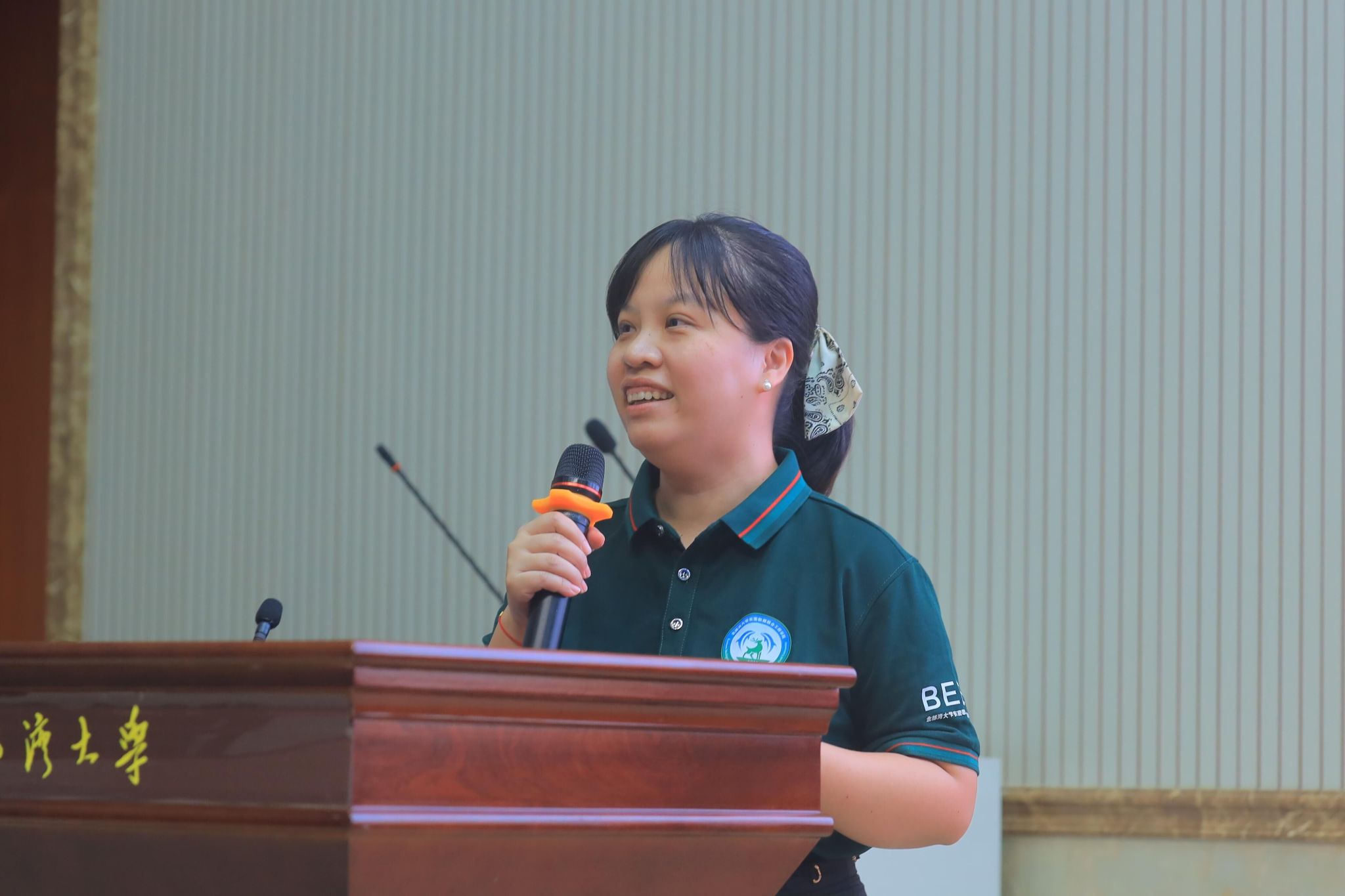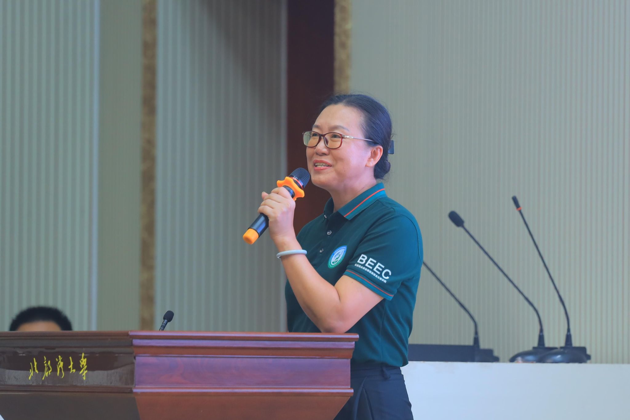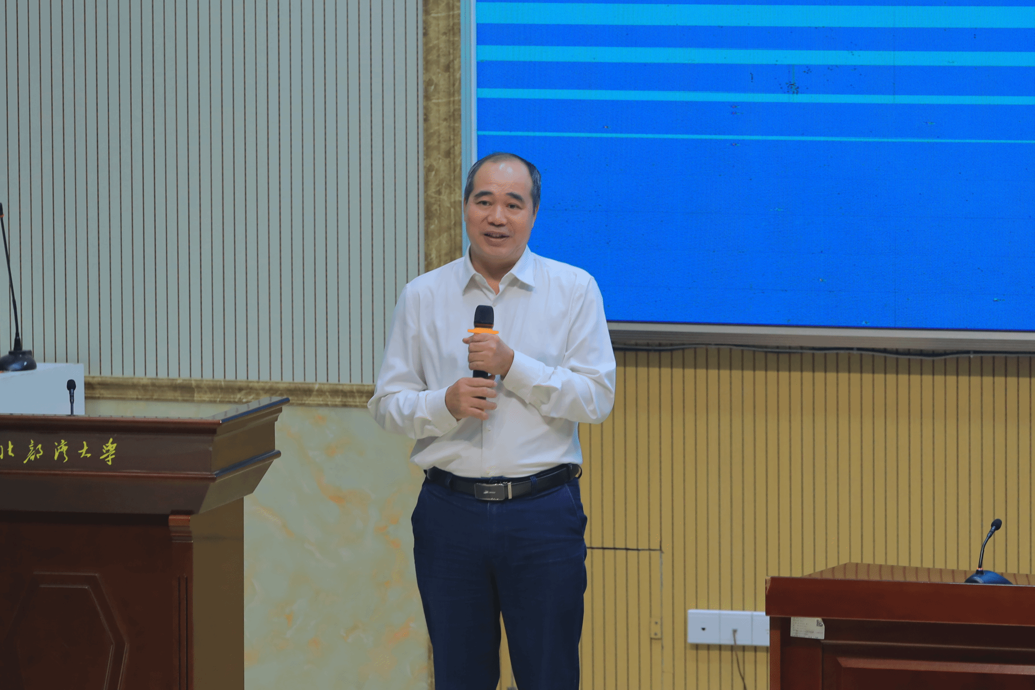 随后,我院苗志滨教授代表学院全体教师发言,苗老师用自己风趣的语言,介绍了学院的教师团队,并对大家未来的四年提出了新的期望。大学英语教研室主任郭杏老师以跨文化、中外合作办学为背景,为大家详细规划了四年的英语学习路径及不同层次同学的语言能力提升办法。郭老师以实际场景为背景,用生动的例子详细说明了英语学习的本质问题。