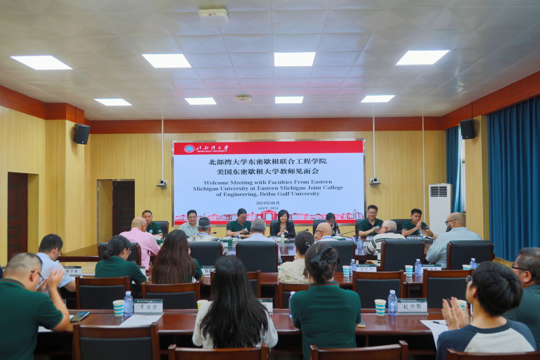 会议开始,陈丹首先向美国东密歇根大学教授的到来表示热烈欢迎,并预祝各位教师教师节快乐,中秋阖家欢乐。陈丹简要介绍了钦州市、北部湾大学和北部湾大学东密歇根联合工程学院的基本情况。她表示希望双方合作高校之间认真总结近三年来的办学规律和经验,进一步加强沟通与交流,针对北部湾大学的实际情况和社会需求进一步优化和完善人才培养方案和课程体系。同时坚持OBE理念,以学生为中心,以产出为导向,进一步优化教学质量反馈机制,建立畅通有效的沟通机制,及时关注学生学习效果,中美双方教师共同努力提升教学质量。双方密切配合,共同推进教育部本科教育教学审核评估和美国ABET工程认证等相关重点工作的顺利进行,争取在国际项目合作方面取得新的成绩。