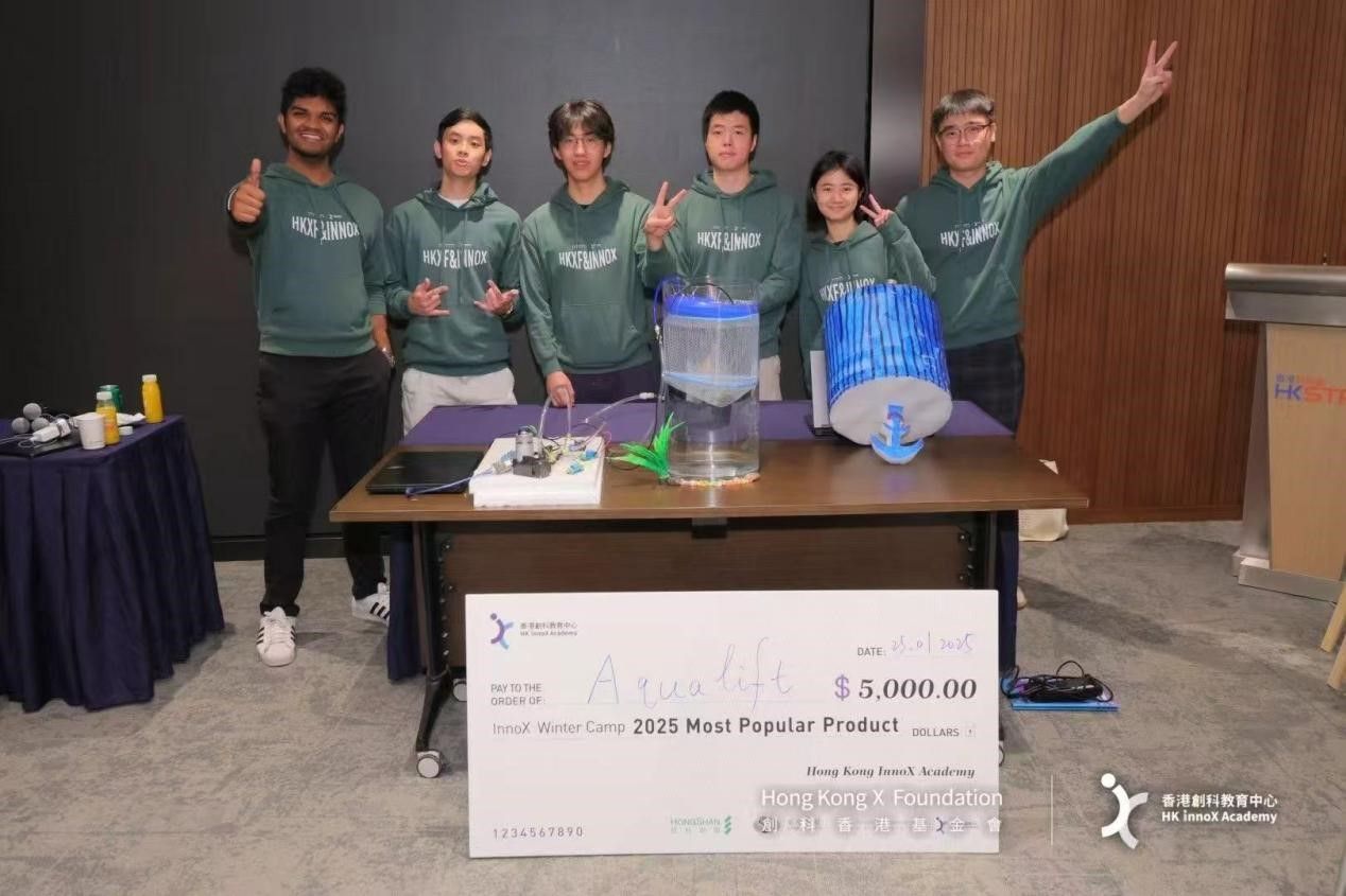近日,由香港创科教育中心举办的InnoX Camp“水上科技”主题创科训练营圆满结束。联合工程学院车辆工程专业2021级尼燚彬同学作为项目负责人、CEO,最终凭借Aqualift项目斩获“最受欢迎奖”,成为最受网友喜爱的 InnoX Winter Camp 2025项目。这也是湾大学子首次入选该项目。