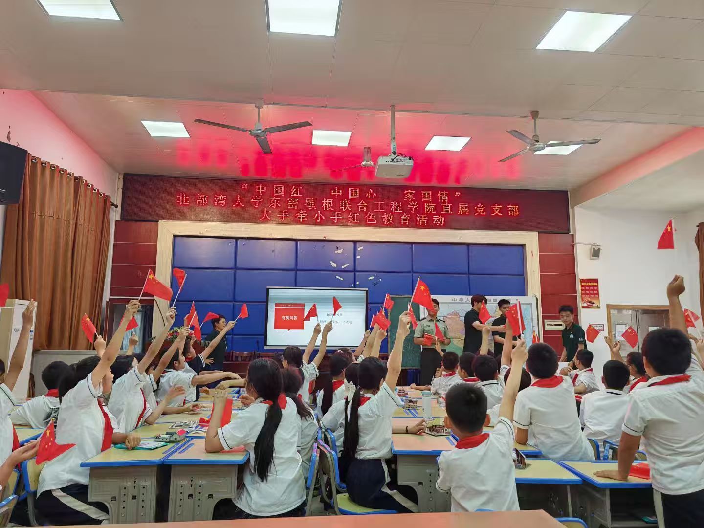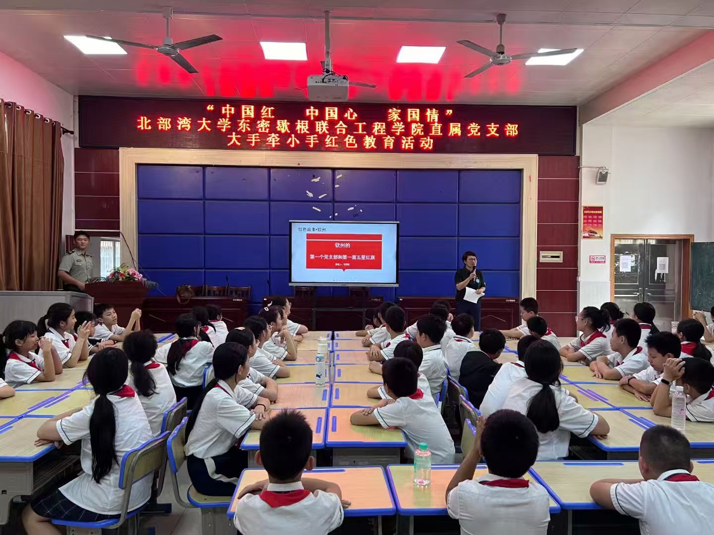 5月26日下午,学院直属党支部书记韦雪敏带领学院党员与团员代表到钦州市实验小学,与五年级11班中队携手开展了“中国红·中国心·家国情”大手牵小手红色教育活动。据悉,这也是学校“旗帜引领 向海图强”主题系列活动之一。