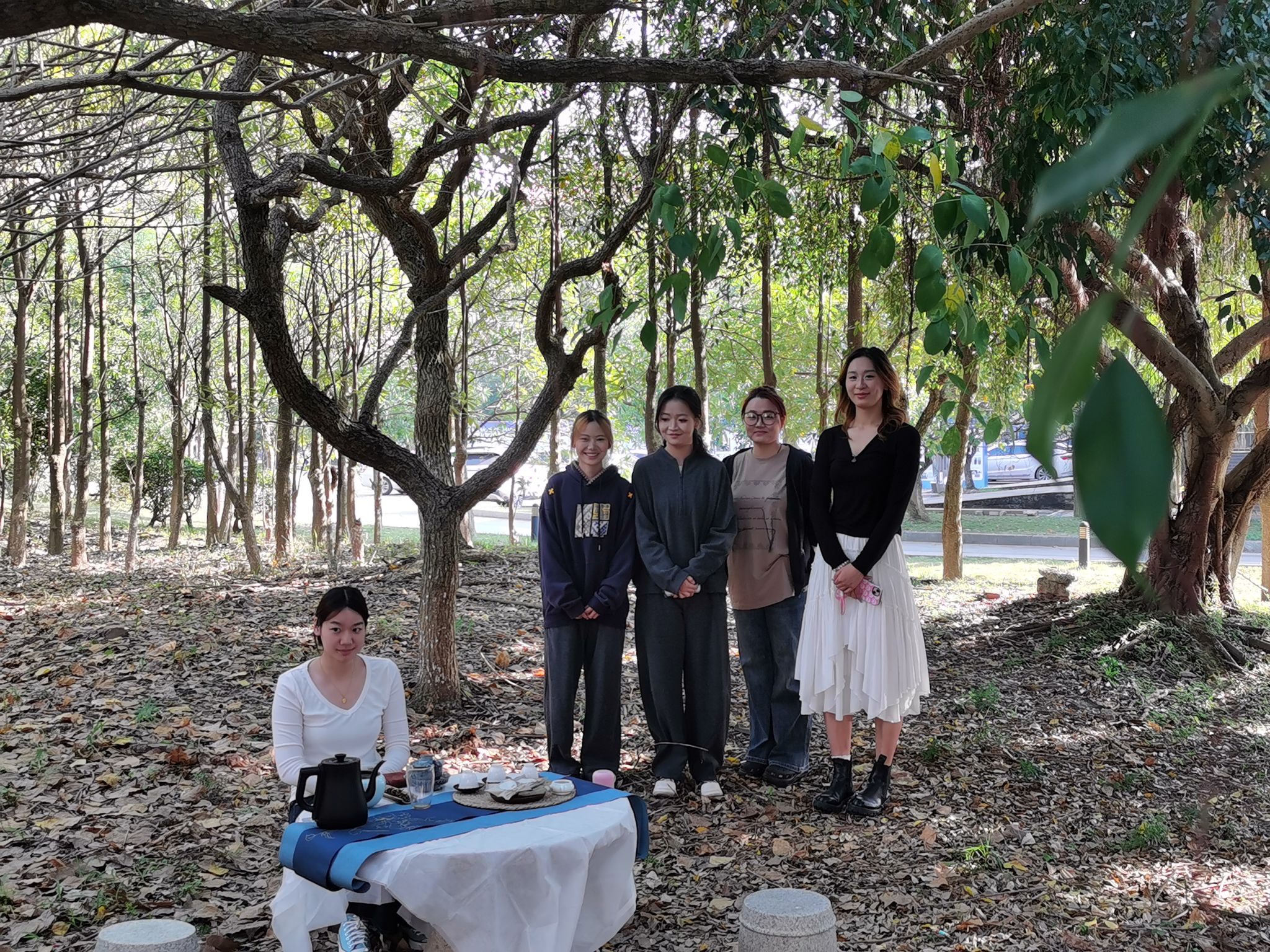 伴随悠扬古典音乐响起,活动正式开启。同学们以小组为单位完成茶席设计与布置,充分利用落叶、石子、野花等自然元素,巧妙融入主题构思与空间布局。在茶艺操作环节,同学们展示了扎实的训练成果。温杯、投茶、注水、出汤、分茶等流程衔接流畅,动作沉稳从容。以自然为境、以茶礼为媒,在沉浸式实践中涵养审美情趣、增强组织意识、凝聚青春力量。