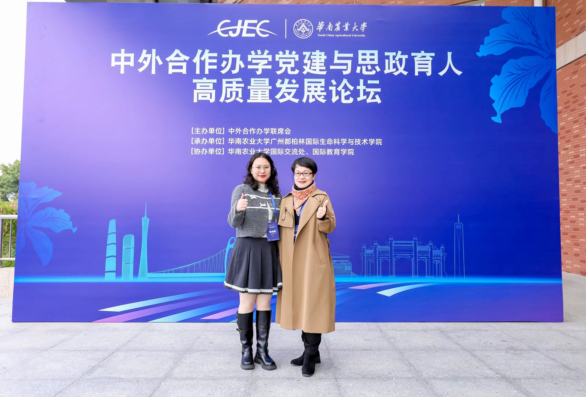 12月12日至14日,我院直属党支部书记韦雪敏、党务秘书韦沫晴赴广州参加由中外合作办学联席会主办的中外合作办学党建与思政育人高质量发展论坛,与来自全国百余所高校共200余位中外合作办学专家、学者共同探讨了全球化背景下中外合作办学党建与思政育人的新思路和新举措。