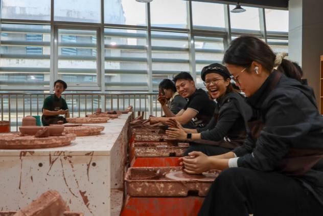 在互动体验区,党员同志们亲手触摸陶土原料,观摩非遗传承人演示拉坯、雕刻等工序。“原来一块普通的陶土,要经过选料、揉泥、成型、烧制等十多道工序才能成器,这和我们做工程项目一样,每一步都要精益求精!我对“工匠精神”有了更具象的理解”预备党员傅孜瀚感慨道。