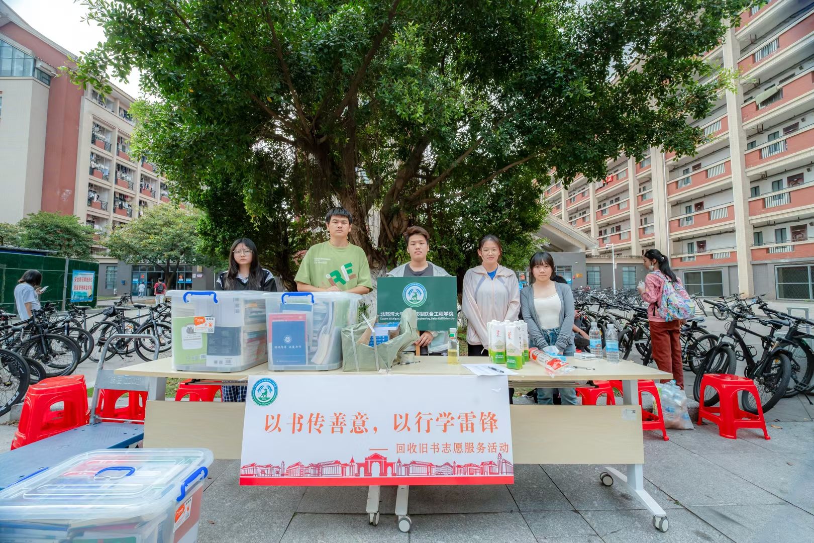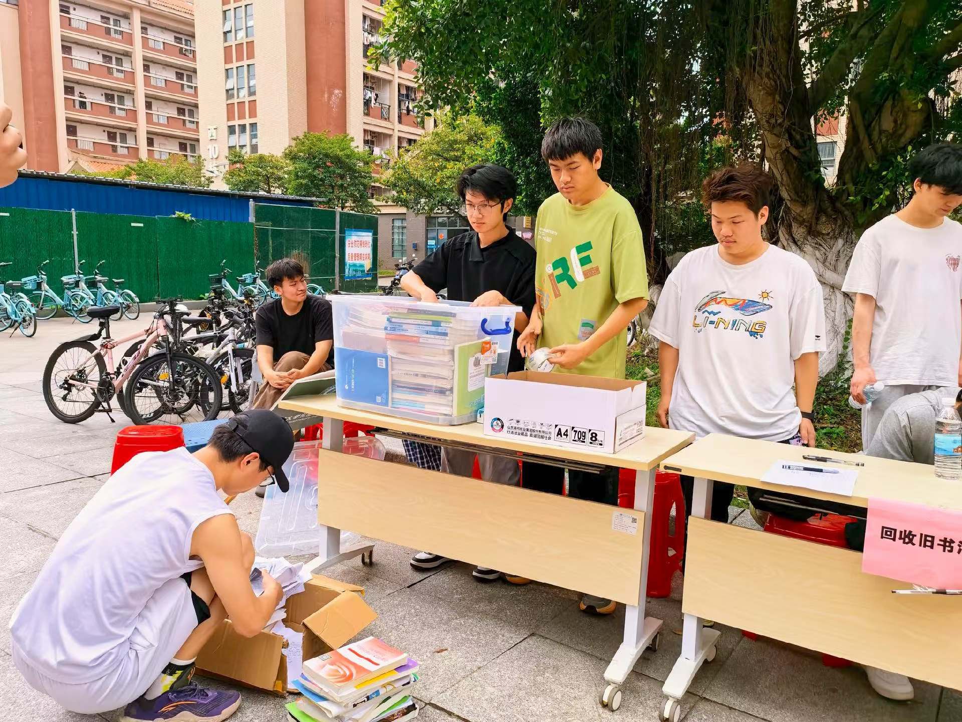 3 月 28 日,学院在西 15 栋宿舍开展旧书回收志愿服务活动,旨在传承弘扬雷锋精神,让闲置书籍焕发新价值学院直属党支部书记韦雪敏、院团委书记高美林也来到现场指与志愿者一同参与爱心实践。