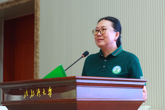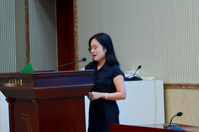 教师代表蒙松子用英语向新生介绍了我院大学英语课程的特色,并为同学们提供了有效的学习方法和资源建议。