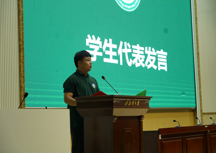 高年级学生代表卢骏杨与新生代表陈雲邦也分别发表了感言。卢骏杨与新生们分享了自己在学院的学习与成长经历,鼓励新生珍惜大学时光,勇敢追梦。陈雲邦则表达了对即将到来的大学生活的期待,立志在接下来的四年中努力奋斗,用智慧和青春书写人生篇章。