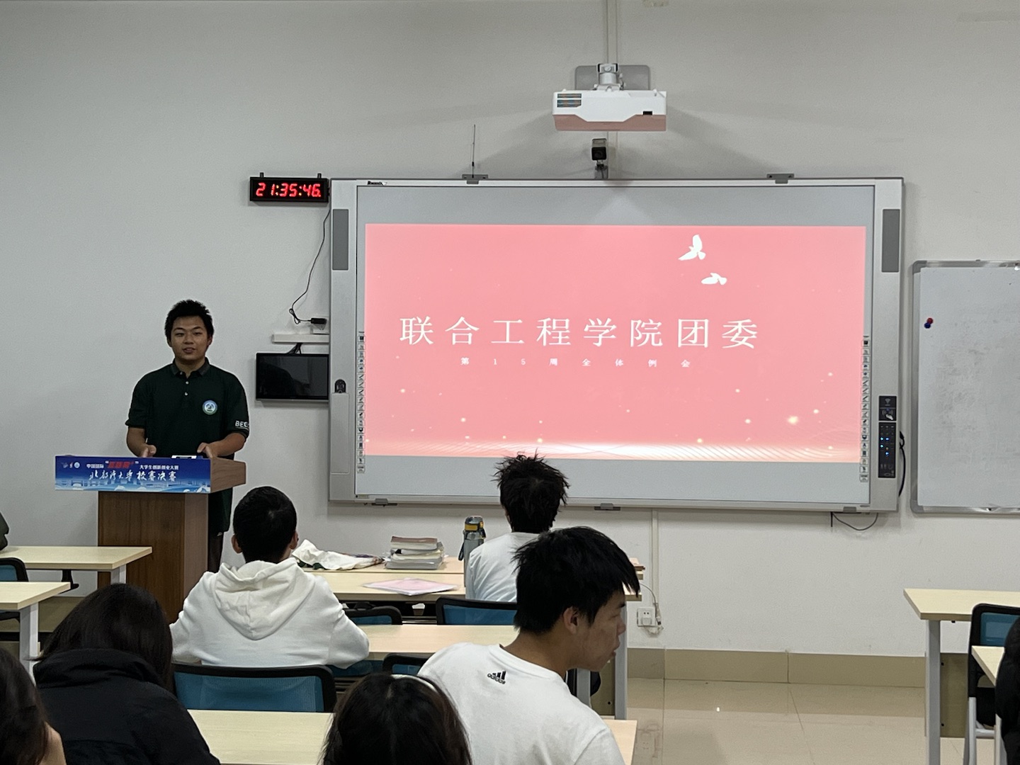 会议开始,学院团委副书记卢骏杨首先公布并解读《北部湾大学东密歇根联合工程学院团委例会制度规范》。卢骏杨同学指出,例会制度规范的发布大大增强了团委各部门工作的规范性,有利于增强部门凝聚力和成员归属感,全体团委成员要在原有的工作基础上,强化工作效率和协作精神,助推我院学习型、服务型、创新型团组织建设。随后,卢骏杨同学为全体团委成员介绍了新任团委委员魏文韬同学。魏文韬同学发表入职讲话。他表示,接下来将努力增强学习能力,提高服务意识,发展创新思维,积极投身学院团委建设。